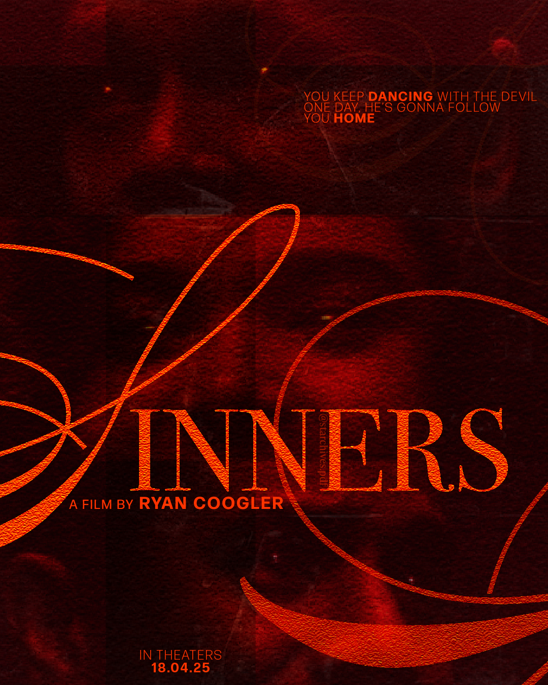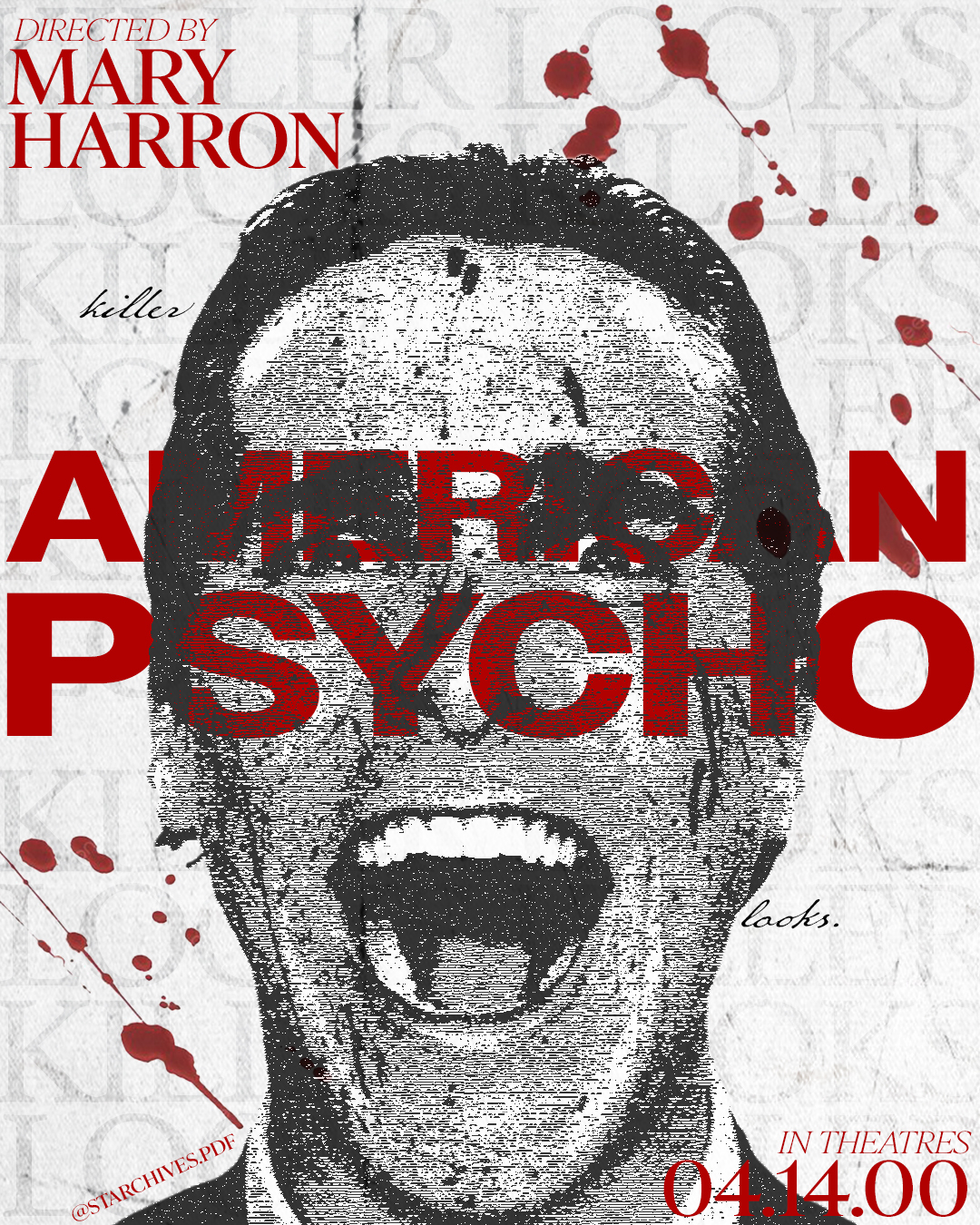 A series of movie posters that were recreated. The movies are ‘Sinners’ , ‘American Psycho’, and ‘Get Out’.